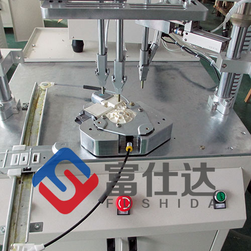 車窗電機自動鎖螺絲機,產(chǎn)品規(guī)格較大這里采用富仕達固定式自動鎖螺絲機